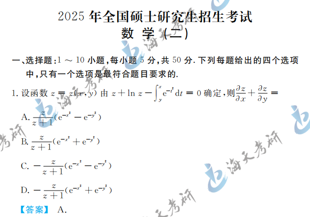 以上就是海天考研网为各位考生整理的2025考研数学二真题及答案解析汇总,仅限参考。持续为考研学子更新其他考研科目考研真题及答案解析,各位考生可以根据自身需要关注收藏,及时查看完整版2025考研真题及答案解析。